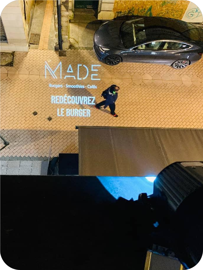 - Project store logos onto sidewalks at night to boost foot traffic and brand recognition.